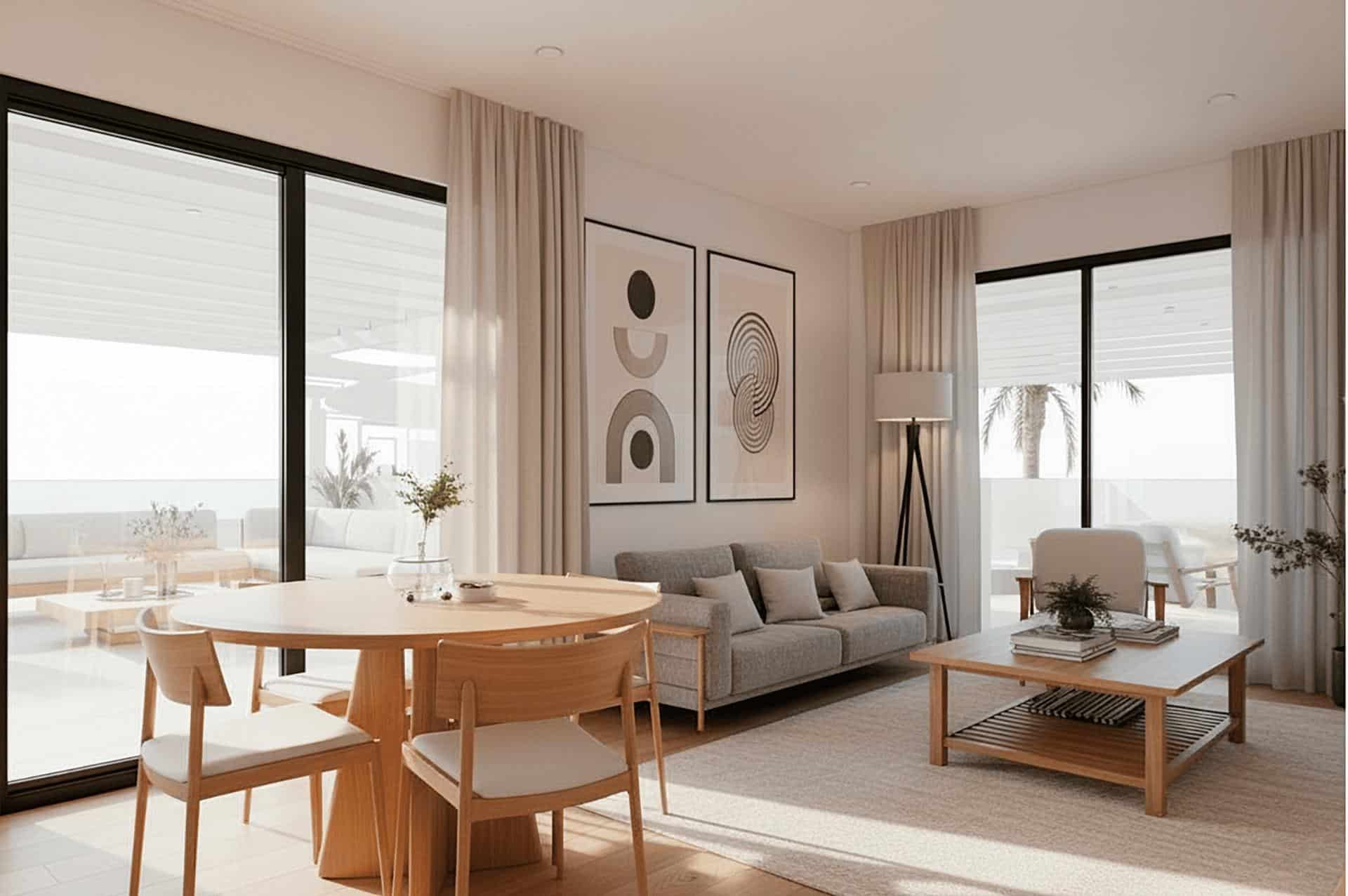 The development features stylish two- and three-bedroom apartments, each with two bathrooms, including an en-suite. Every home has been designed to enhance outdoor living, an essential part of life on the Costa Cálida. Ground and first-floor apartments boast spacious private terraces ideal for outdoor dining and relaxation, while top-floor properties offer generous private solariums complete with a summer kitchen, creating the perfect space to enjoy the sun throughout the year.