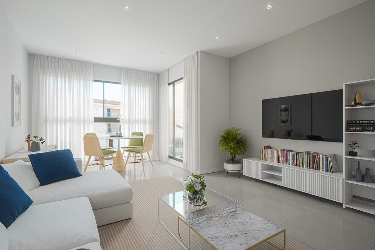This contemporary residential development offers a selection of beautifully designed 2 and 3-bedroom apartments, each featuring 2 bathrooms (including a private en-suite). Buyers can choose from ground-floor homes with a terrace and patio, mid-floor apartments with a spacious terrace, or exclusive penthouses boasting a private solarium, perfect for enjoying the sunshine and refreshing sea breeze all year long.