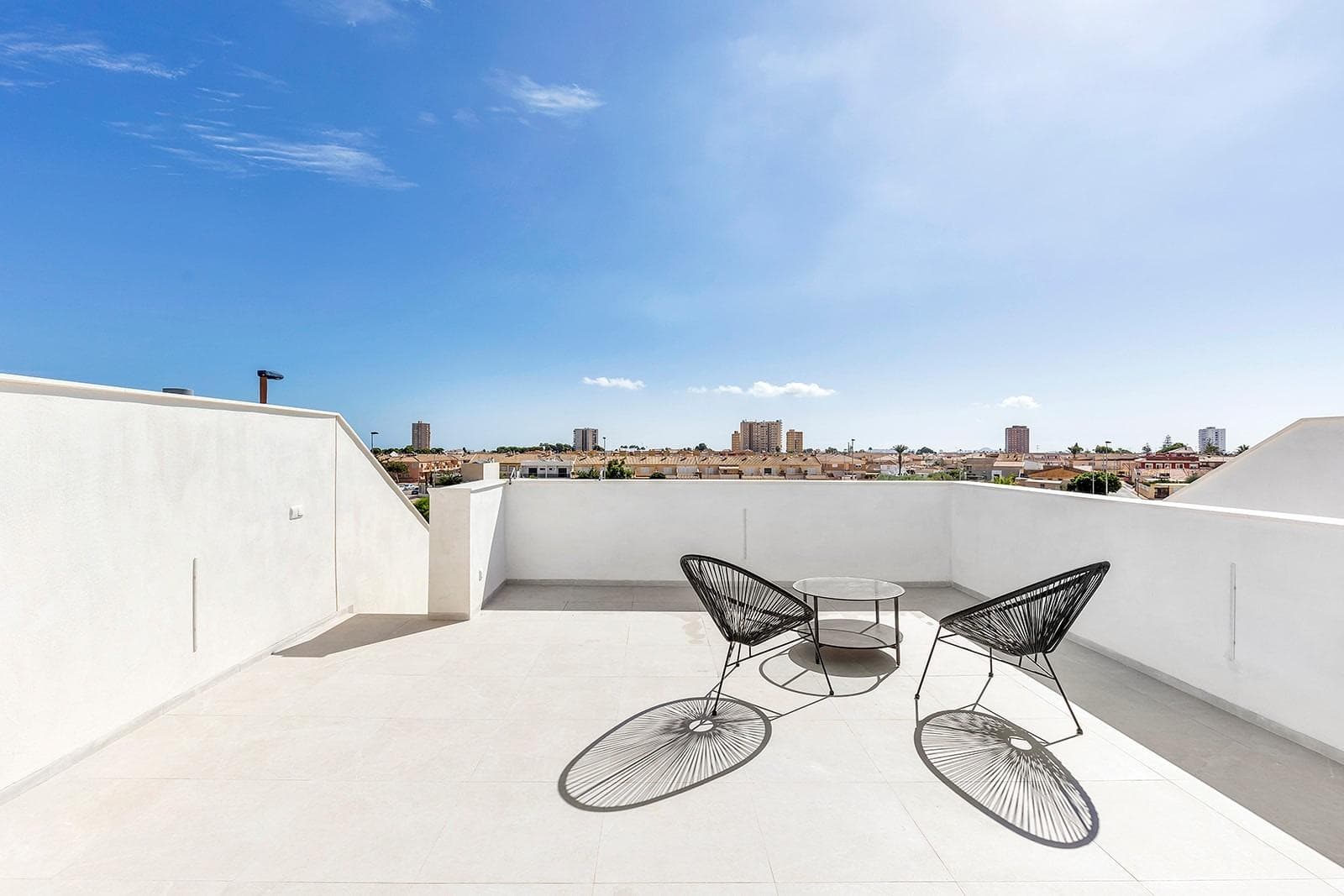 Every villa includes a private swimming pool and on-plot parking, creating a functional and private outdoor space perfect for enjoying the Mediterranean climate throughout the year. Single level homes feature a private rooftop solarium, ideal for sunbathing or relaxing while taking in open views, while two storey villas offer generous upper floor terraces that extend the living space outdoors.
