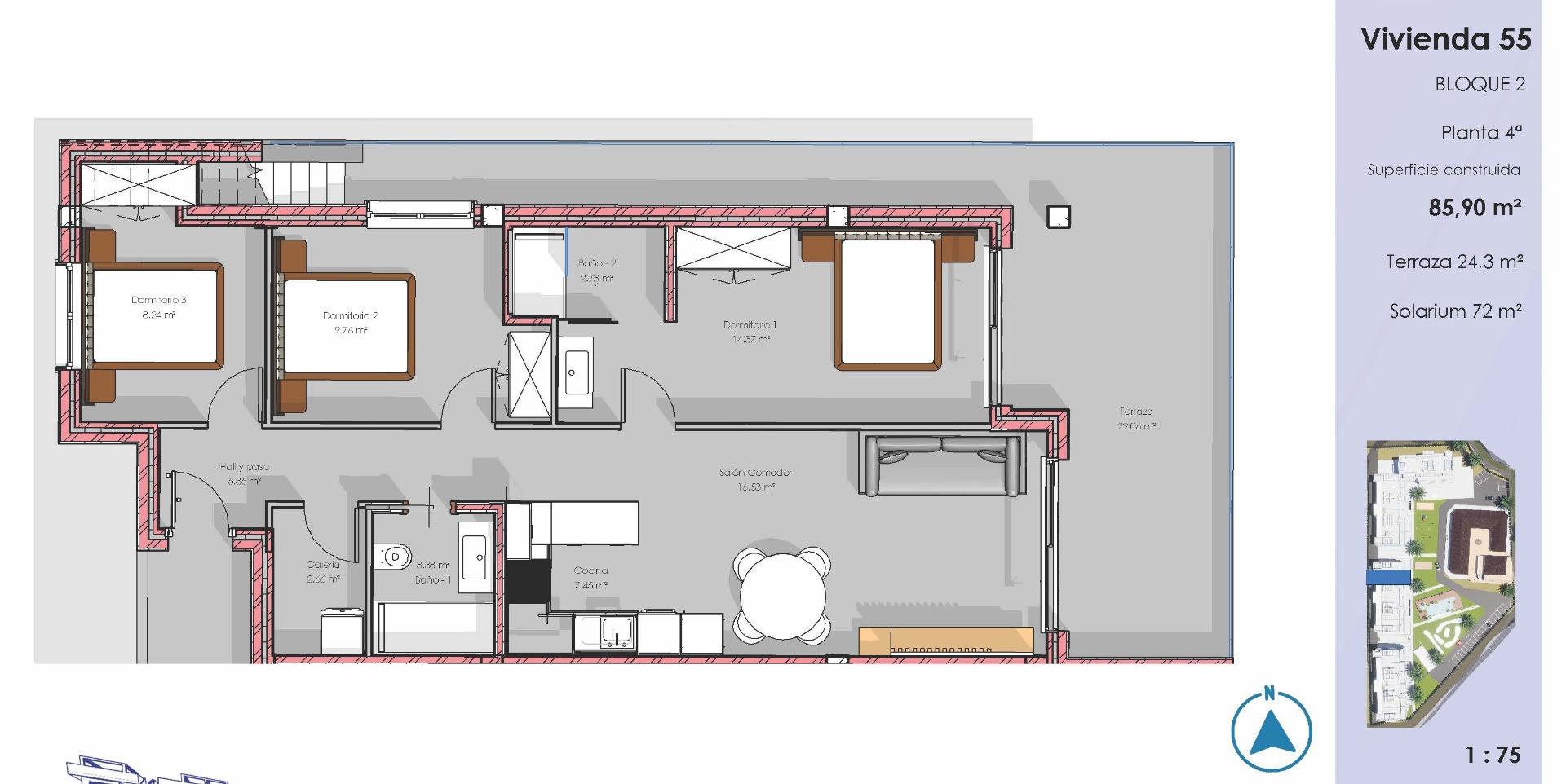 3 Bed 2 Bath Penthouse in Guardamar Del Segura.