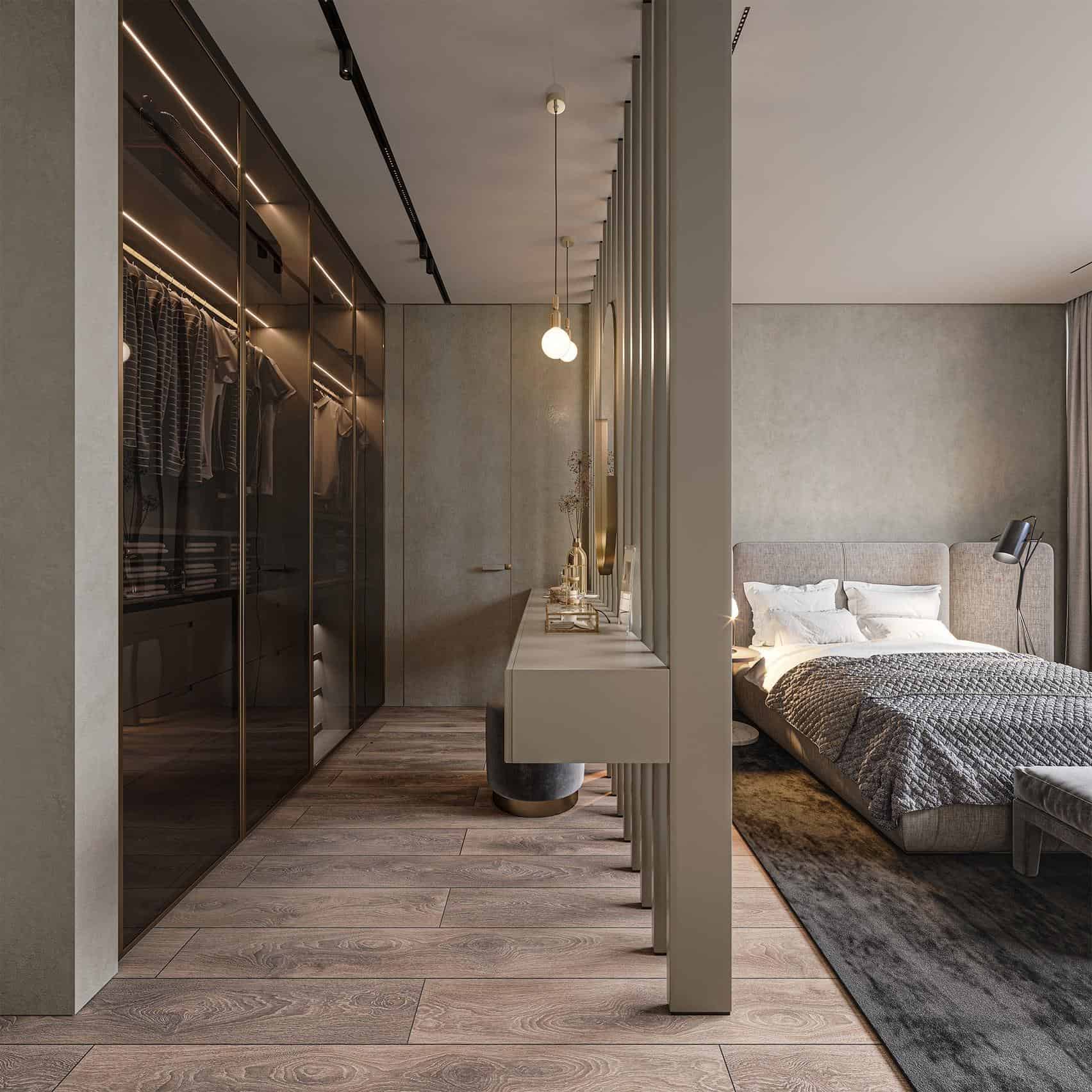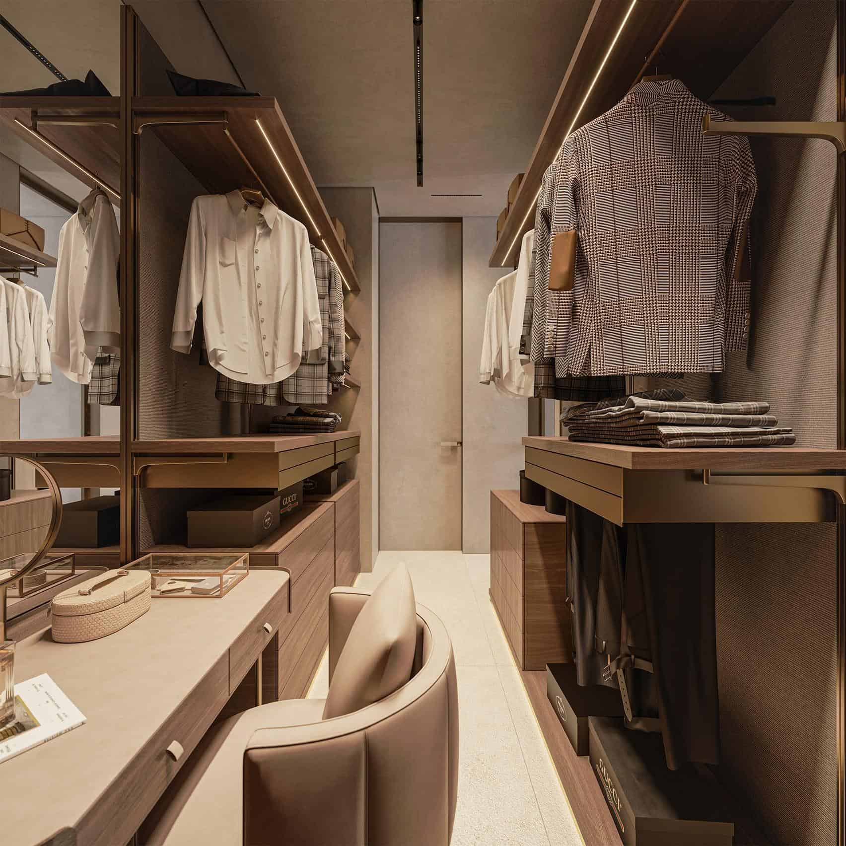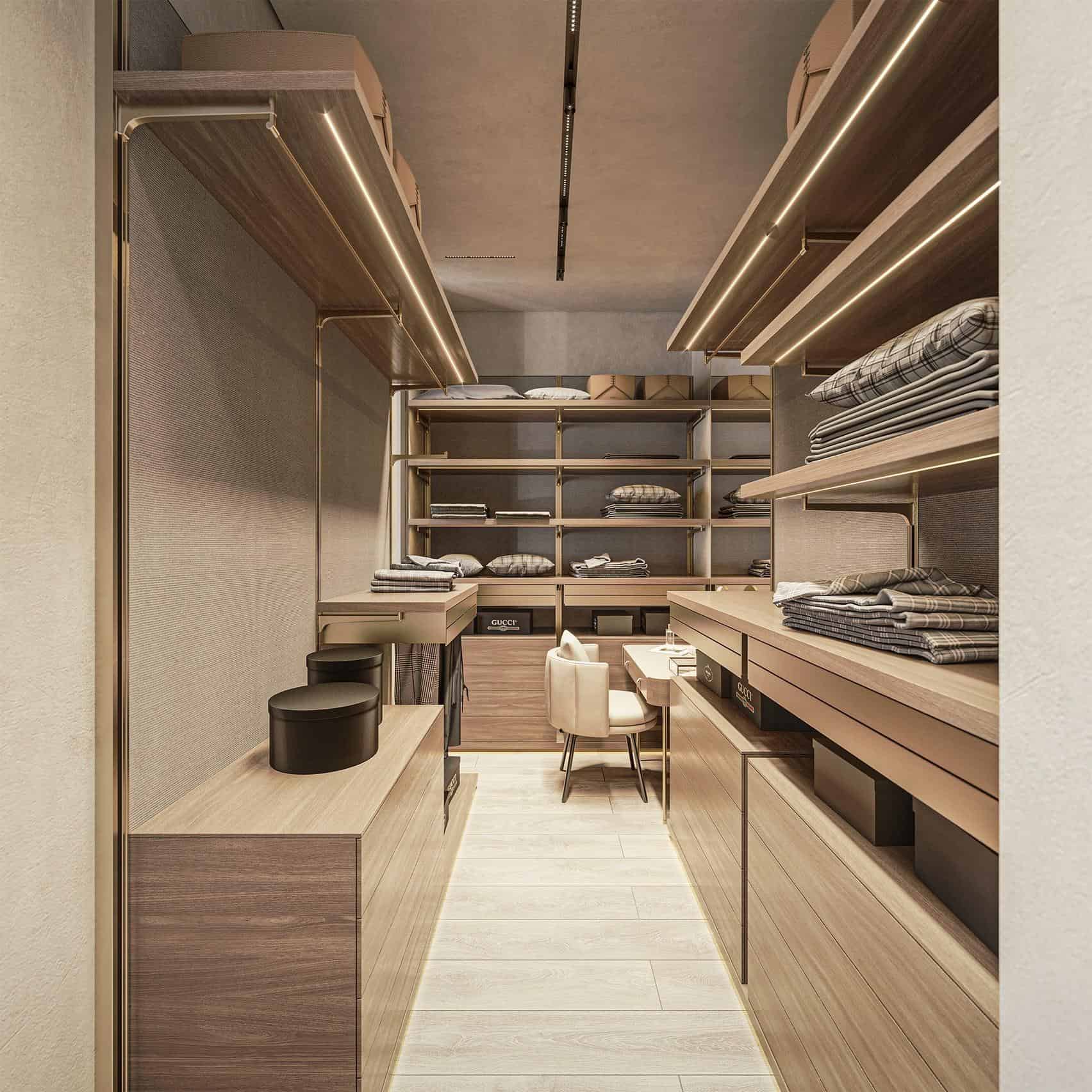 The villa features four spacious bedroom suites, each with its own en-suite bathroom and direct access to terraces. Every room has been thoughtfully designed as a private retreat, finished with high-quality materials and attention to detail. The master suite is particularly impressive, offering a walk-in wardrobe and a luxurious bathroom with a freestanding bathtub overlooking the sea, evoking the ambiance of an exclusive spa.