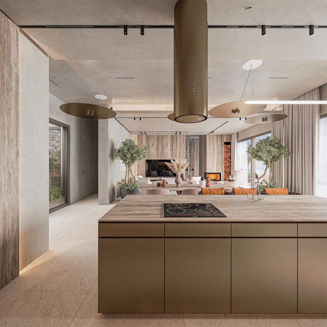 The home is distributed across three levels, all connected by a private elevator for maximum comfort and accessibility. The main living area is a bright, open-plan space where the lounge, dining area, and designer kitchen flow harmoniously together. The kitchen is fitted with Italian cabinetry and high-quality Siemens appliances, creating a refined yet practical environment ideal for both daily living and entertaining. The continuity between interior and exterior spaces enhances the sense of openness and connection to the surrounding landscape.