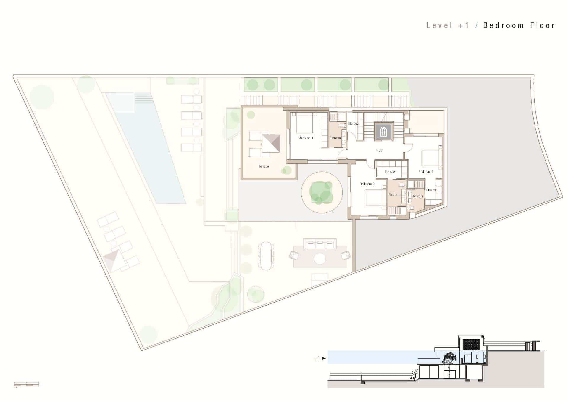 Set on a 935 m² plot with a built area of 305 m², the villa boasts 4 spacious en-suite bedrooms, a guest toilet, and an open-plan living and dining area that flows seamlessly into expansive terraces and a private 55 m² swimming pool. Generous glazing and open views ensure natural light throughout the day, creating a warm and inviting atmosphere.